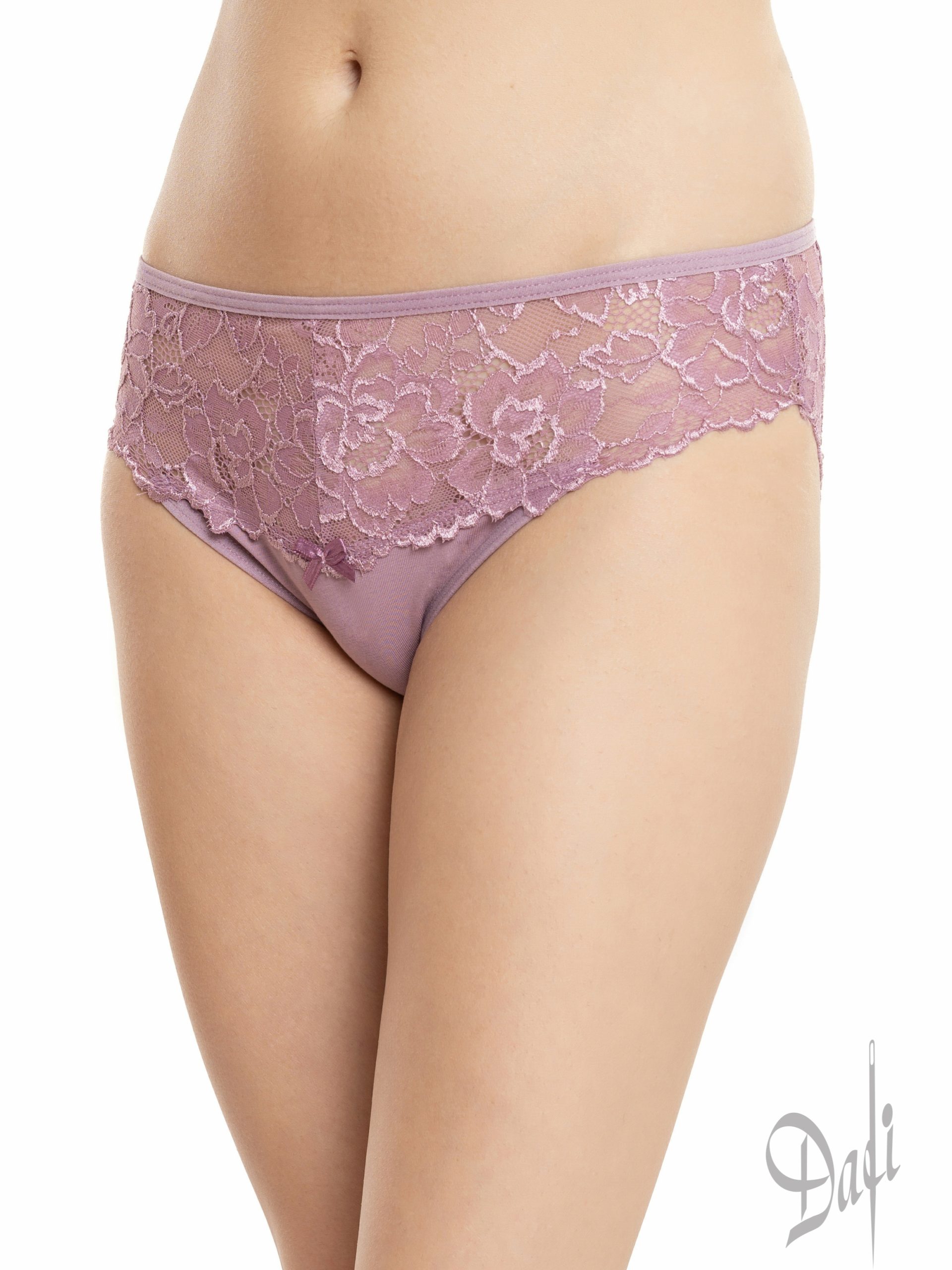 Бикини “ДАФИ” 119 е с богата декорация от италианска дантела , която придава по-женствен и изискан вид. Предната част на бельото е почти изцяло изработена от дантела , така и по задната част, изработен по този начин моделът е изключително удобен при носене ,незабележим под горна дреха и много. Класически силует.