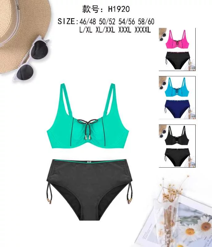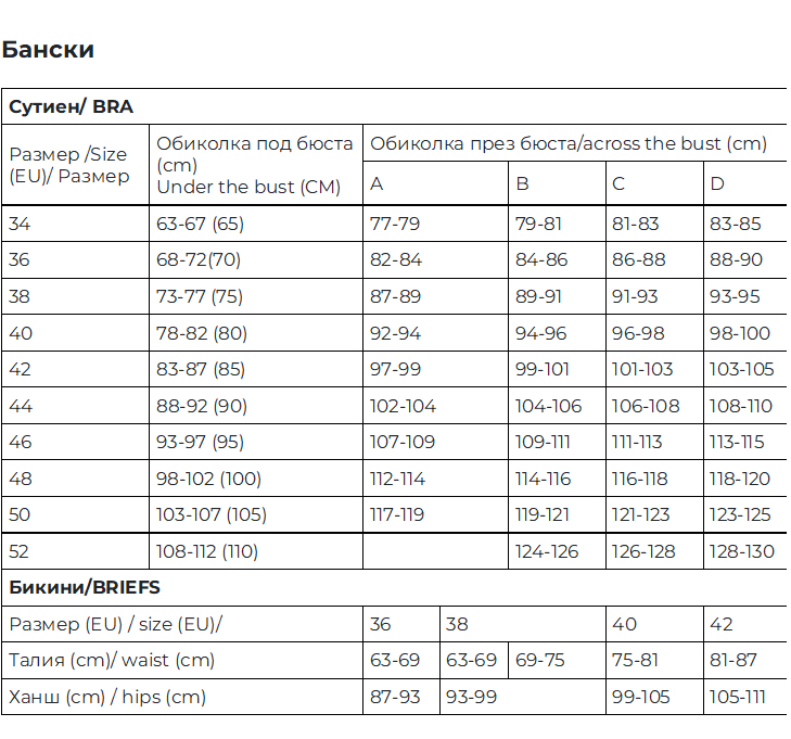 Бански от две части Долнище тип бикини, горнище без подплънки Презрамките се регулират.