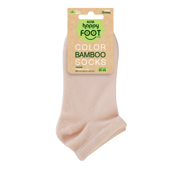 Къси чорапи от органичен бамбук в бежов цвят Agiva Happy Foottopia. Създадени от висококачествена материя с естествени антибактериални свойства, регулират температурния баланс и осигуряват копринена мекота. Красивите наситени цветове, несъмнено носят добро настроение и са креативен детайл към всяка визия. Всички модели от серията са без пластмасови закачалки на етикета, с мисъл за теб и природата!