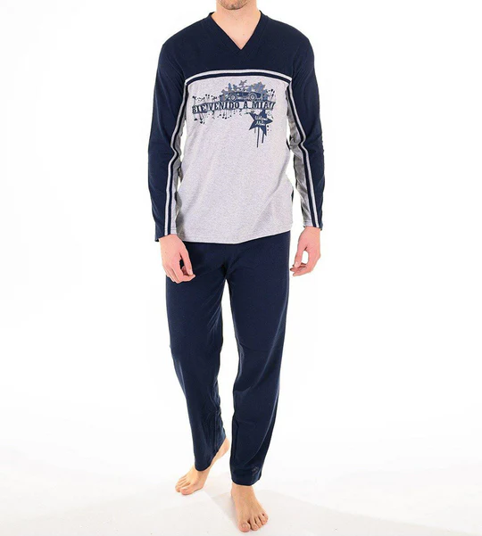 Пижама изработена от 100% памук, горна част е с дълъг ръкав, долна част е от дълъг панталон